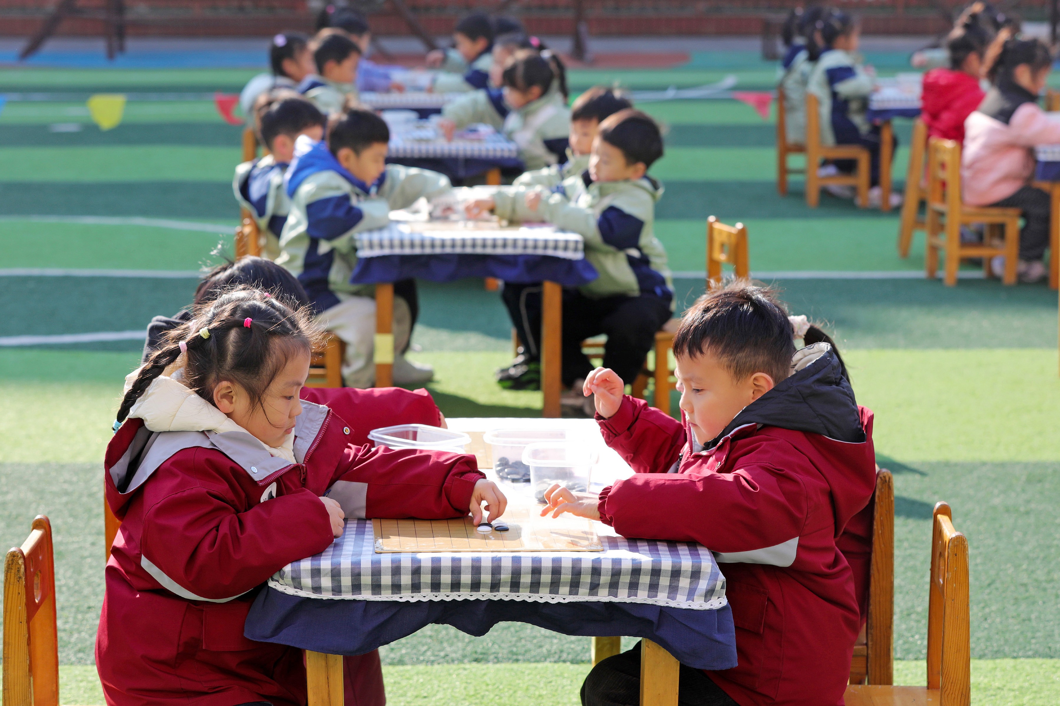 安徽淮北:萌娃對弈 樂在“棋”中